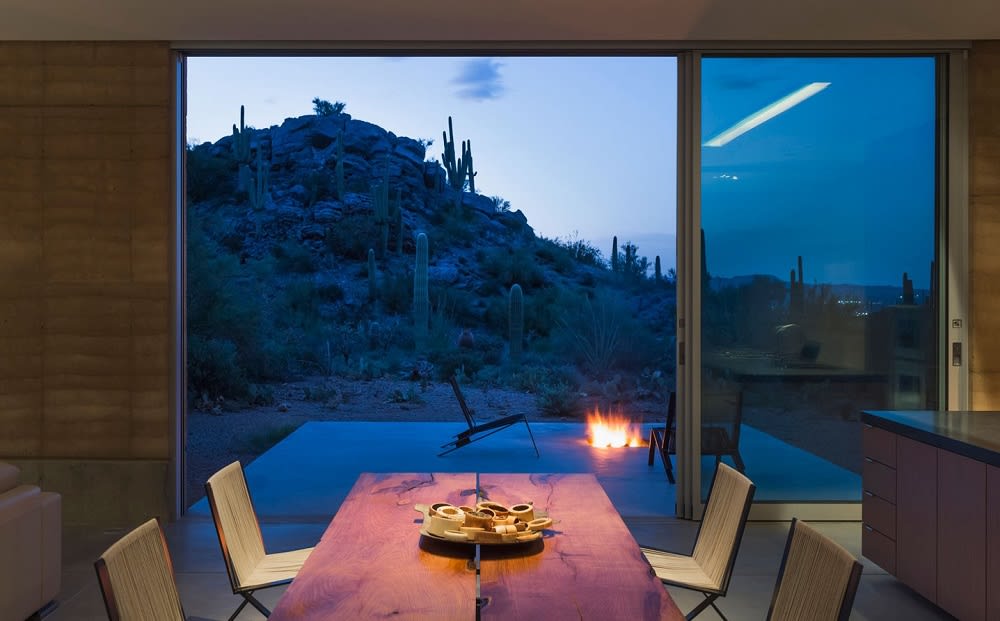 Arizona’s desert mountains lend themselves to contemplation and reflection. The Tucson design studio DUST completed this mountain retreat in the summer of 2012 for a couple whose dream was “reconnecting their roots to this magical and mysterious landscape.” Instead of adobe, the home’s core structure is built from rammed earth. DUST infused the house with accents like fragrant Spanish cedar in bedrooms, charred bathroom walls, and dappled light filters.