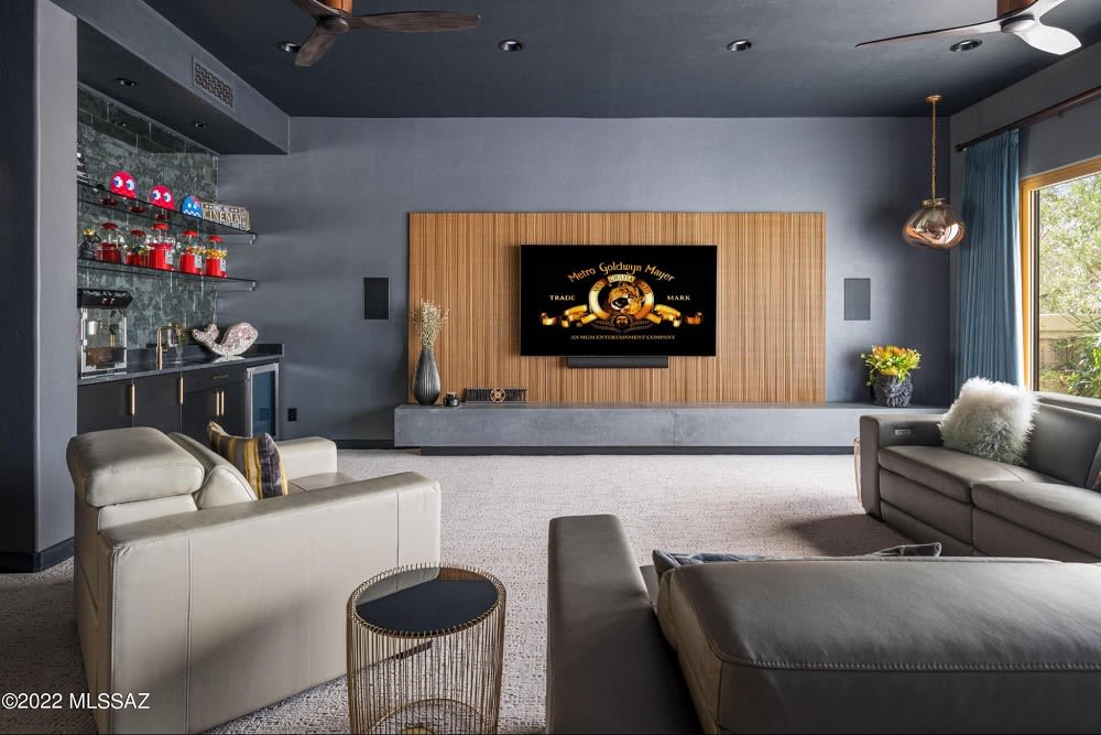 Acclaimed builder John Kline came out of retirement to construct this renewed vision of the home’s true potential. Each room is generously proportioned and optimized for its purpose. The home’s entrance gives way to exaggerated high ceilings. On the upper level, floor to ceiling windows give way to the warm glow of Arizona sunshine, filling the home with soft natural light and views of surrounding tree canopies and the Catalina mountains. The emphasis on entertainment continues in the dedicated media room, integrated with cutting-edge technology.